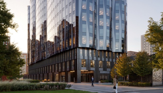 Идея проекта, как объяснил главный архитектор Москвы Сергей Кузнецов, навеяна зеленым окружением района. Архитекторы создали динамичный образ: силуэт здания ассоциируется с парусами, наполненными ветром. Ритмичное оформление торцов задает пульс фасадам, обращенным к улице. Трехэтажная стилобатная часть будет выполнена в темном оттенке, чтобы подчеркнуть вертикаль, а для отделки используют современные материалы — алюминиевые панели, стекло и стемалит.